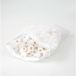 Anneaux en verre fritté pour dégradation des polluants. Dégradation biologique des polluants en aquarium d’eau douce ou d’eau de mer : anneaux de filtration biologiques en verre fritté, à utilisables dans tous les filtres d’aquarium. Épuration intensive de l’eau par filtration biologique : des microorganismes colonisent le média filtrant et dégradent les substances polluantes par voie naturelle biologique. Particulièrement efficace : surface de colonisation optimale de 1200 m2/l pour des micro-organismes utiles grâce à la structure poreuse en tunnel du verre fritté et une épaisseur de paroi de 5 mm.