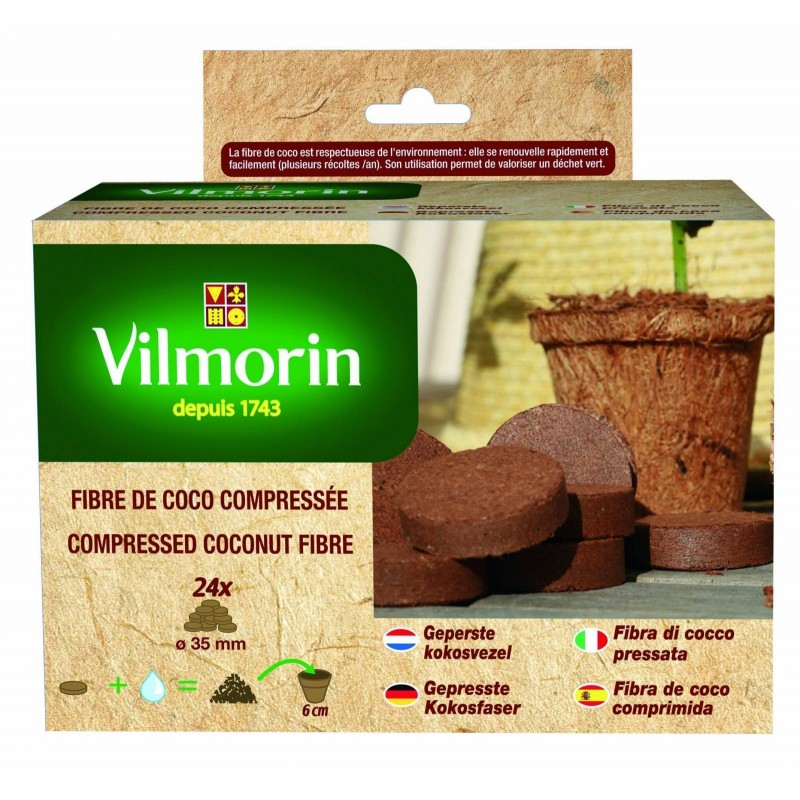 VILMORIN 100% BIODÉGRADABLE-FIBRE DE COCO COMPRESSÉE Pastilles Ø35MM X24