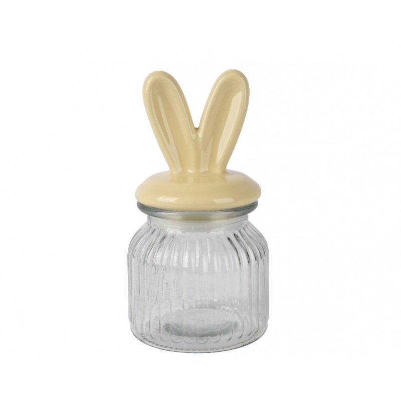 Bocal Couvercle Oreille De Lapin Transparent/Jaune En Verre Ø10-H20-KAEMINGK