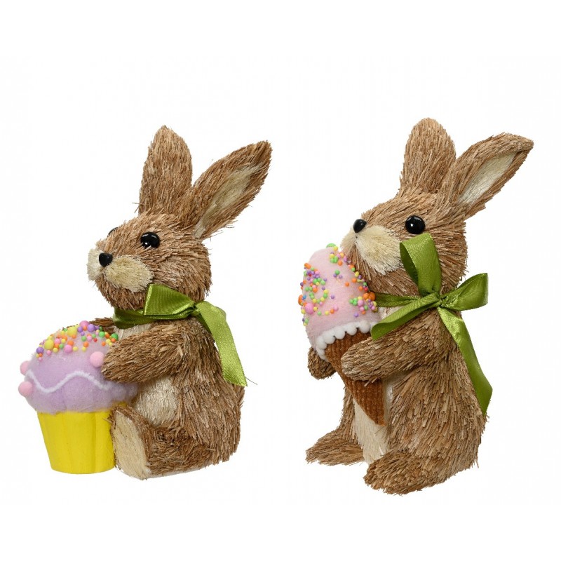 Lapin Paille Cupcakes Brun H16-Vendu À La Pièce-KAEMINGK