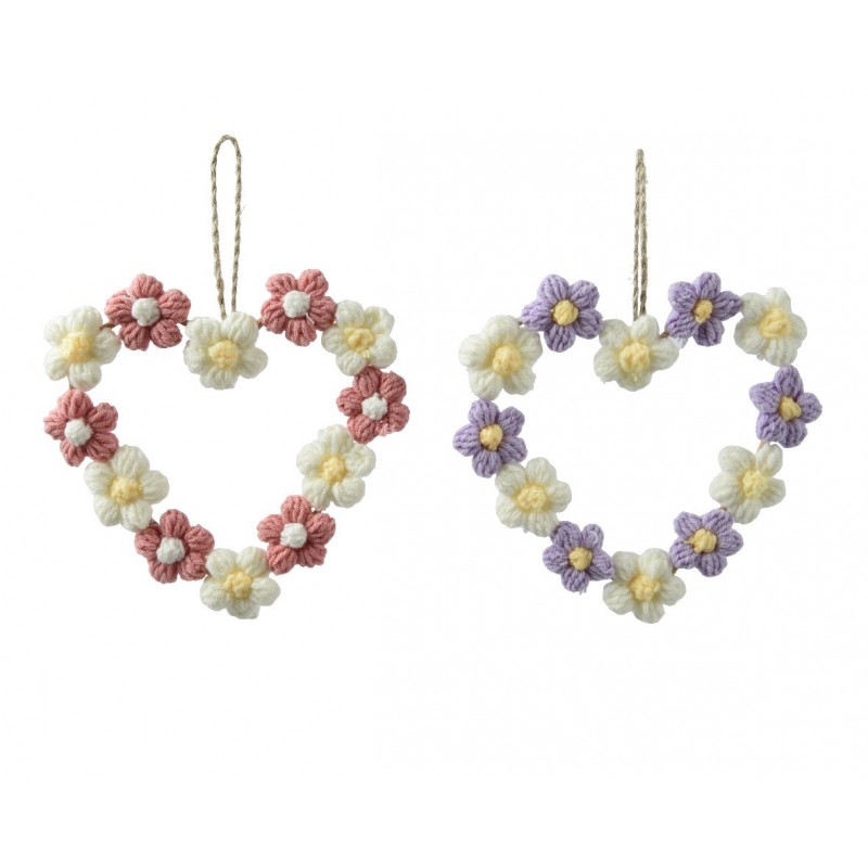 Coeur Fleurs Tricot À Suspendre En Polyester H18-Vendu À La Pièce-KAEMINGK