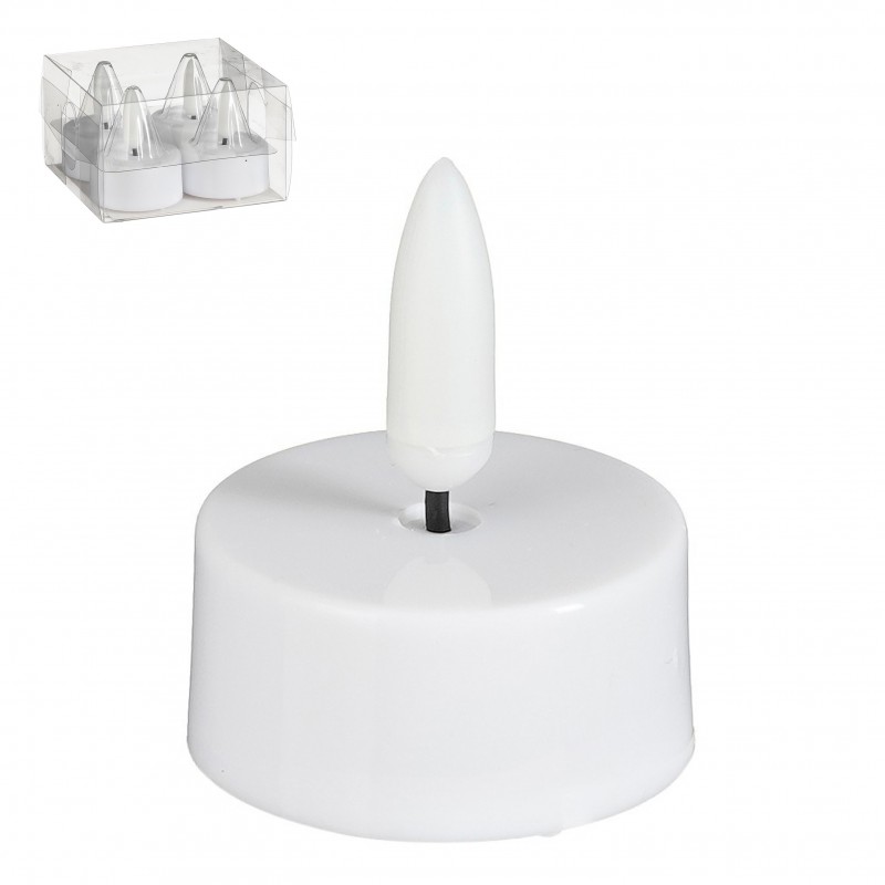 Bougie Chauffe-Plat Led X4 À Pile Blanc En Polypropylène H4.6-Ø3.8-MICA DECORATIONS