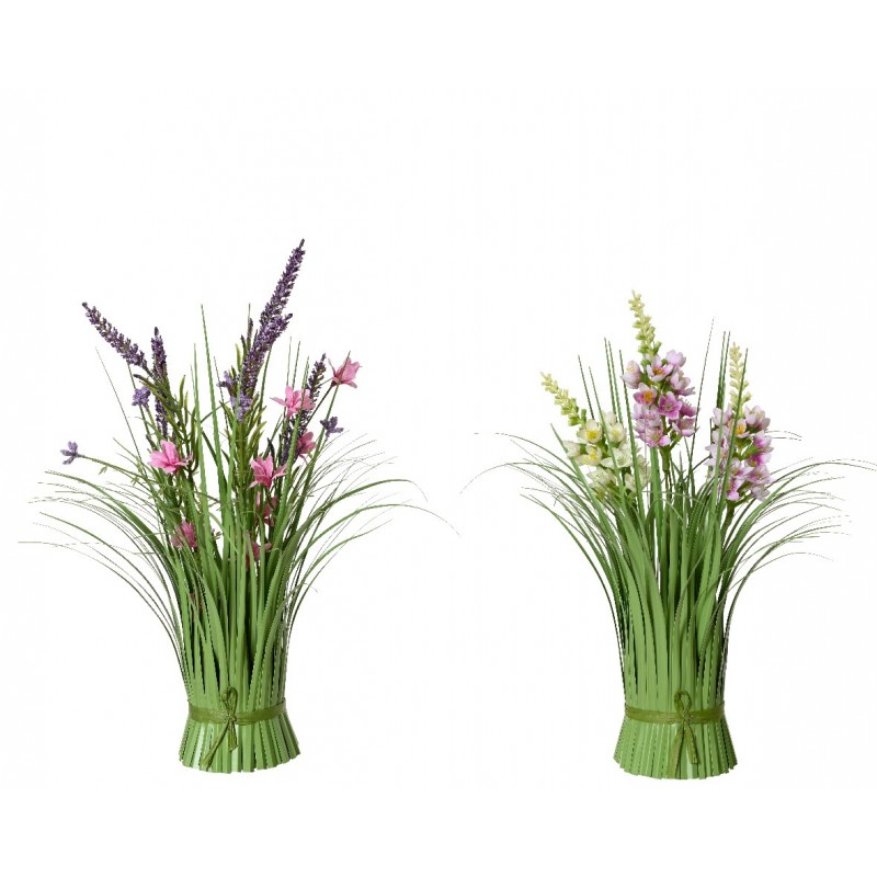 Fagot Herbe+ Fleurette Rose En Polyester Ø13-H30-Vendu À La Pièce-KAEMINGK