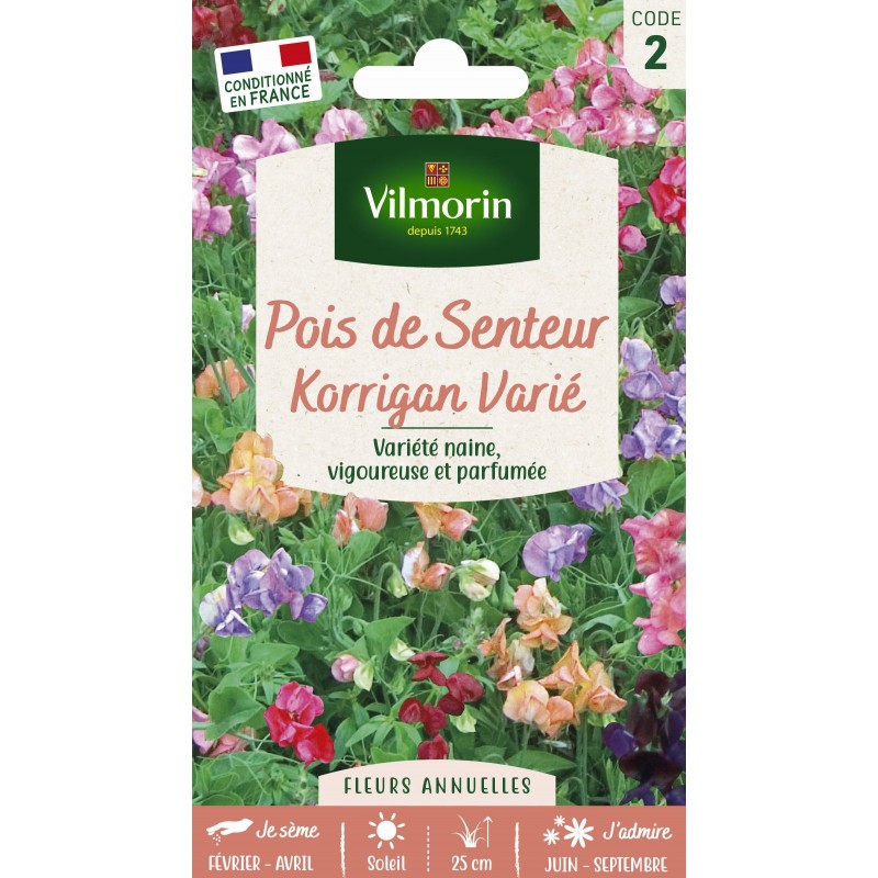 VILMORIN POIS DE SENTEUR Korrigan Varié FLEURS ANNUELLES Sachet CODE 2