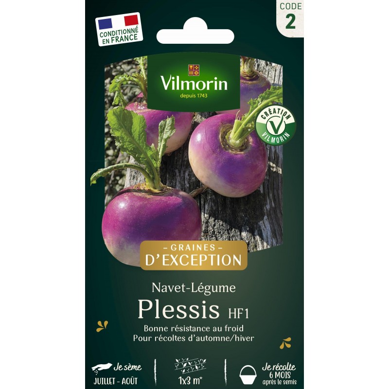 VILMORIN GRAINES D'EXCEPTION-NAVET-LÉGUME Plessis HF1 1X3M Sachet CODE 2