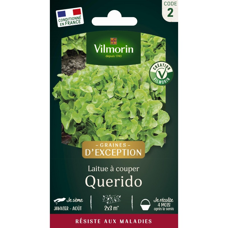 VILMORIN GRAINES D'EXCEPTION-LAITUE À COUPER Querido RÉSISTE AUX MALADIES 2X3M Sachet CODE 2