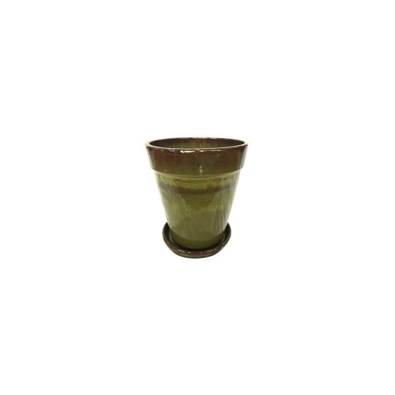 Pot conique avec soucoupe VERNICIATO Ø11 Jade noir TERRALIET