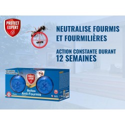 Détruit fourmis et fourmilières. Efficace sur la plupart des espèces de fourmis. Simple d'utilisation, il suffit d'appuyer sur le dessus de la boîte pour percer la capsule contenant le gel. S'utilise à l'intérieur et aux abords immédiats des maisons ou sur les terrasses. Livrées en barquette présentoir ou positionnable sur broche.