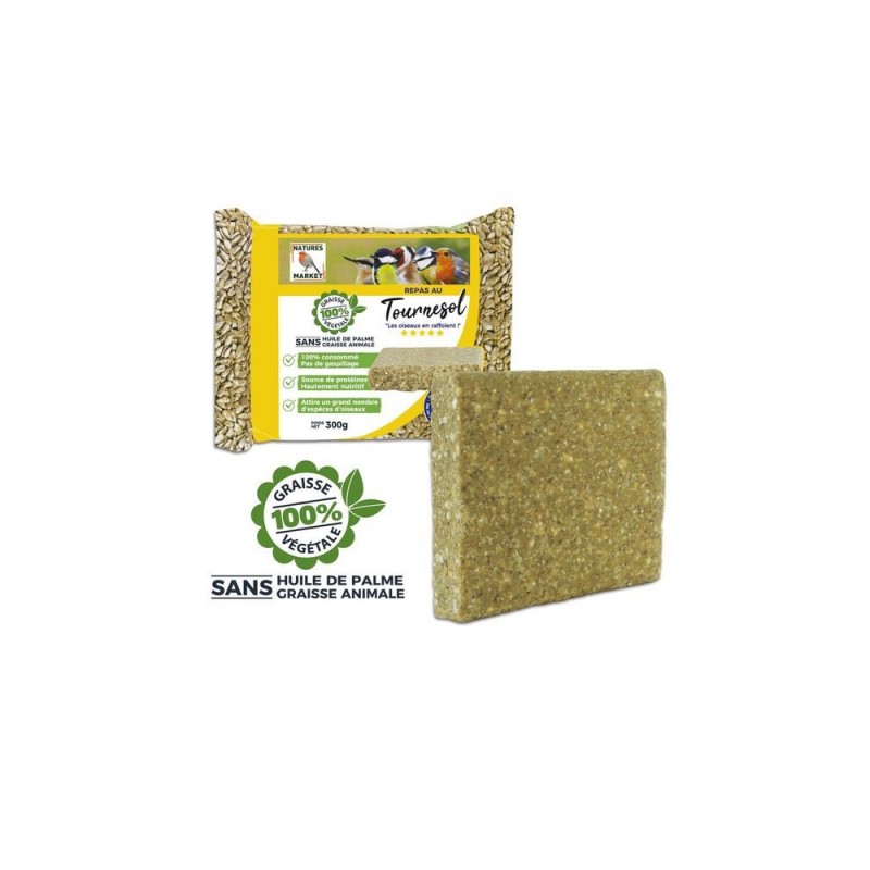 REPAS AU TOURNESOL pain de graisse végétale Oiseaux du jardin 300G NATURES MARKET