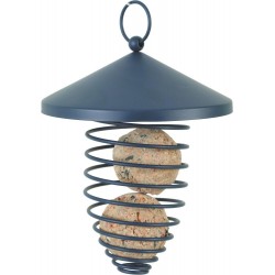 Distributeur, support de boule de graisse en forme de spirale avec toit. Réalisé en métal de qualité pour plus de solidité, il peut contenir jusqu'à 2 boules de graisse. Le toit permet de protéger les boules de graisse de la pluie. Le distributeur dispose d'un anneau permettant de le suspendre. Longueur du réservoir: 11cm. Longueur totale (avec l'anneau): 18cm.