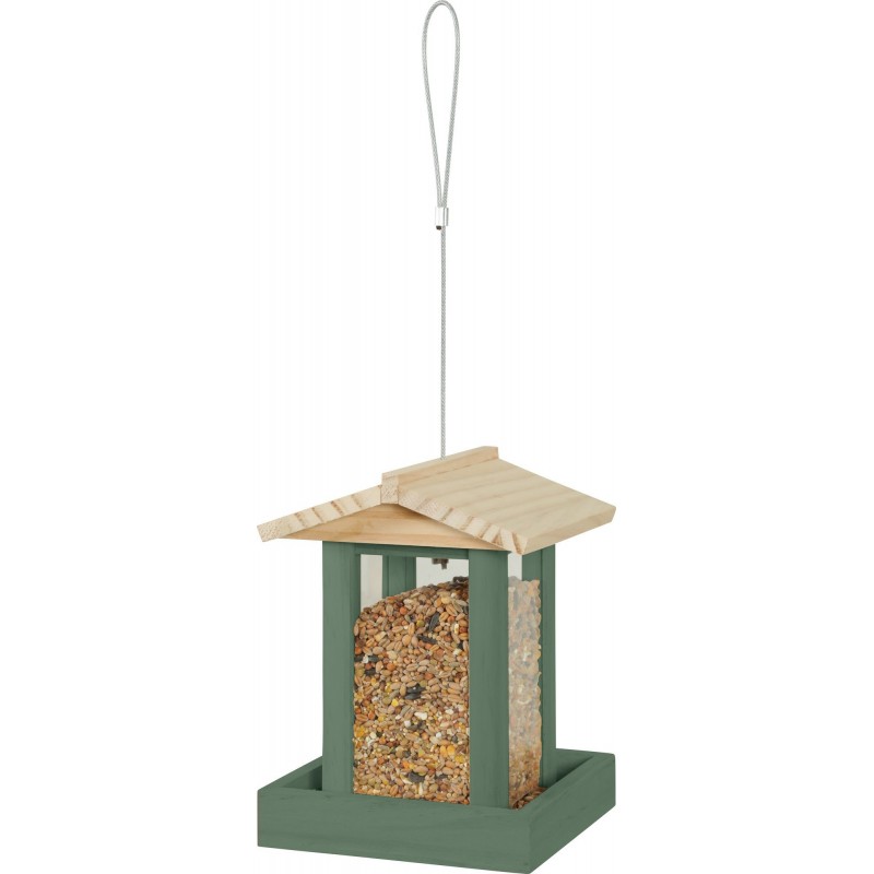 Mangeoire en bois avec toit pour les oiseaux du jardin. Bois massif certifié FSC d’une épaisseur de 9mm. La mangeoire permet de mettre à disposition environ 650g de graines (la contenance peut varier en fonction des graines utilisées). La mangeoire est fournie avec un lien en métal résistant afin de pouvoir la suspendre. Toit ouvrant permettant un remplissage par le dessus.