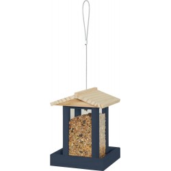 Mangeoire en bois avec toit pour les oiseaux du jardin. Bois massif certifié FSC d’une épaisseur de 9mm. La mangeoire permet de mettre à disposition environ 650g de graines (la contenance peut varier en fonction des graines utilisées). La mangeoire est fournie avec un lien en métal résistant afin de pouvoir la suspendre. Toit ouvrant permettant un remplissage par le dessus.