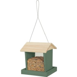 Mangeoire en bois avec toit pour les oiseaux du jardin. Bois massif certifié FSC d’une épaisseur de 9mm. La mangeoire permet de mettre à disposition environ 1,3 kg de graines (la contenance peut varier en fonction des graines utilisées). La mangeoire est fournie avec un lien en métal résistant afin de pouvoir la suspendre. Toit ouvrant permettant un remplissage par le dessus.