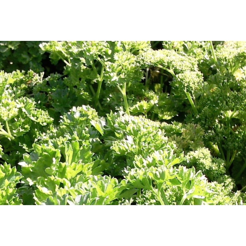 Le persil frisé est une plante condimentaire très appréciée. Il forme une touffe herbacée à végétation bisannuelle, ses feuilles, découpées, frisées, de couleur vert foncé sont parfumées. Le persil se consomme cru pour parfumer les salades, les viandes, les farces ou les sauces, il est également utilisé dans les bouquets garnis