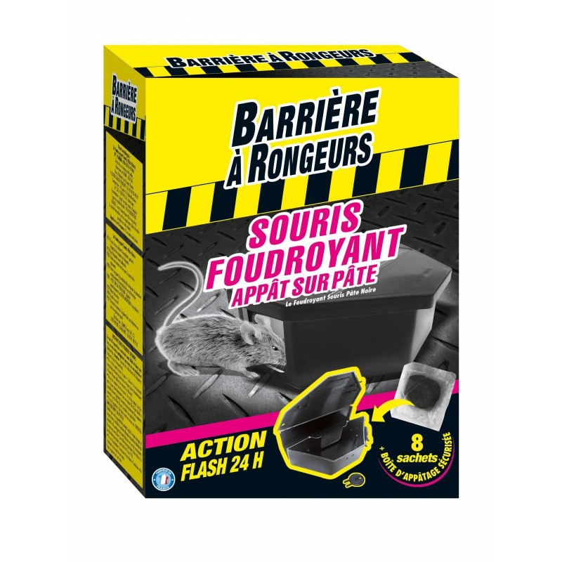 Souricide foudroyant en appât sur pâte prêt à l'emploi sous forme de sachet. Provoque la mort de la souris dans les heures qui suivent la consommation. Spécial lieux secs. Attractivité et appétence maximales même en cas de concurrence alimentaire. Étui contenant une boîte appât sécurisée + clé.