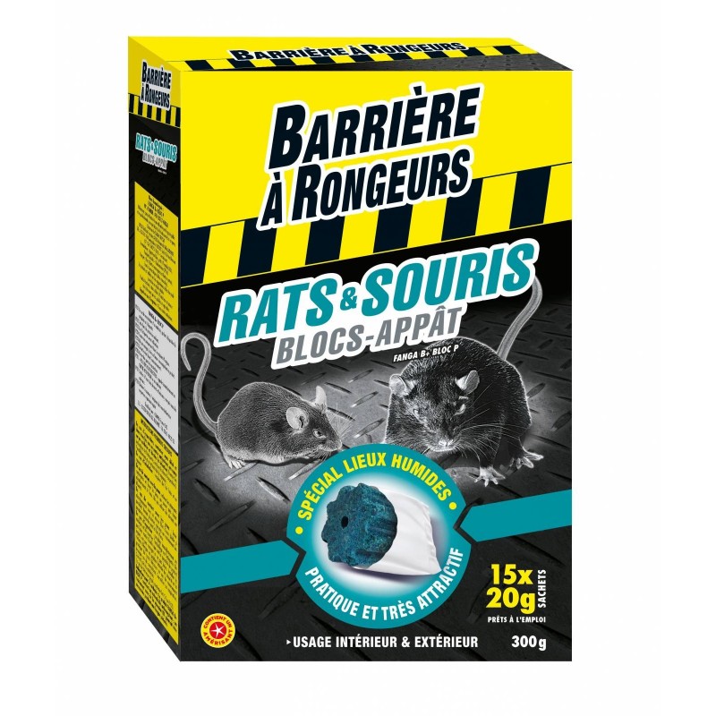 Blocs-appât suremballés prêts à l?emploi permettant d?éliminer rats et souris. Spécial lieux humides. Doit être utilisé emballé. À base d?anti-coagulant. n?éveille pas la méfiance des rongeurs. Contient un agent d?amertume.