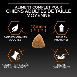 PURINA PRO PLAN Medium Adult avec OPTIBALANCE est une alimentation complète développée en fonction des besoins des chiens adultes de taille moyenne. Ces croquettes sont riches en poulet et cette recette a été spécifiquement formulée pour satisfaire les besoins nutritionnels de votre chien et le garder au mieux de sa forme. OPTIBALANCE est une combinaison équilibrée de nutriments spécifiques pour aider à soutenir sa bonne santé.