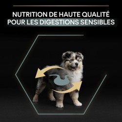 PURINA PRO PLAN Medium Puppy Sensitive Digestion Riche en Agneau est une alimentation sous forme de croquettes pour les chiots de taille moyenne.