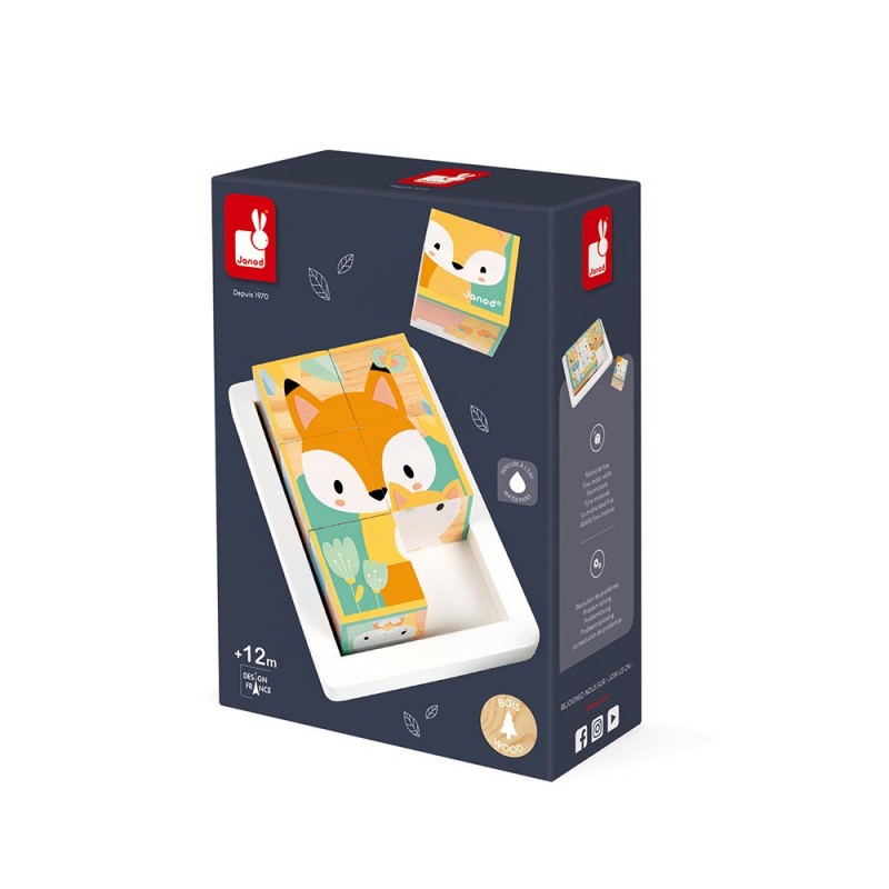 Ce jeu de construction composé de 6 cubes en bois massif, va encourager votre enfant à développer sa coordination et son sens de l’observation. Les 6 illustrations aux couleurs douces, basées sur le thème des portraits d’animaux avec leurs enfants (ours, renard, lapin, belette, cerf), favoriseront l’imagination et la mémoire visuelle de votre enfant. Peinture à l'eau. Bois : pin. Boite couleur fermée.