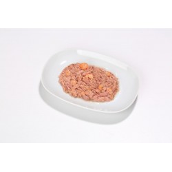 COMPOSITION: Thon 55%, bouillon de poisson 24%, crevettes 20%, riz 1%.